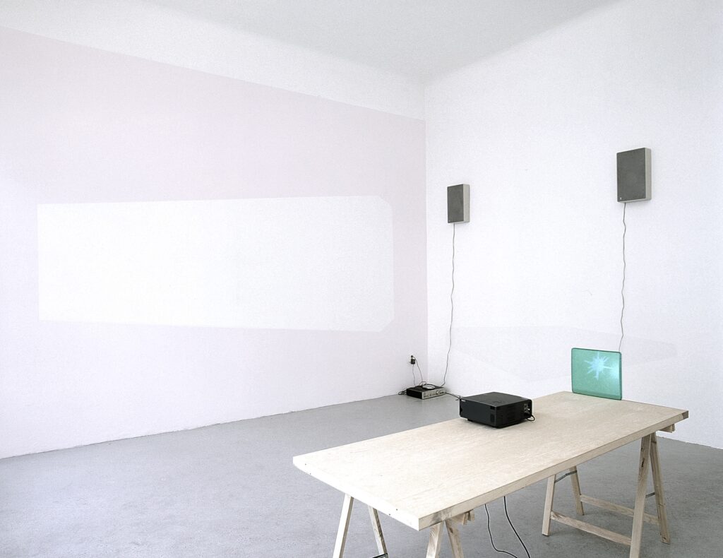 Steady Sound installation | wall paintings, screen, video projector (8 sec video loop, Superman, Warner, 1978), table, sound system Wohnmaschine, Berlin, 2001 In the exhibition steady, Robert Lippok pointed to a dynamic cluster of different rep- resentative and communicative forms. Music and everyday noises, mural and video loop, self-made and found objects, the analogue and […]